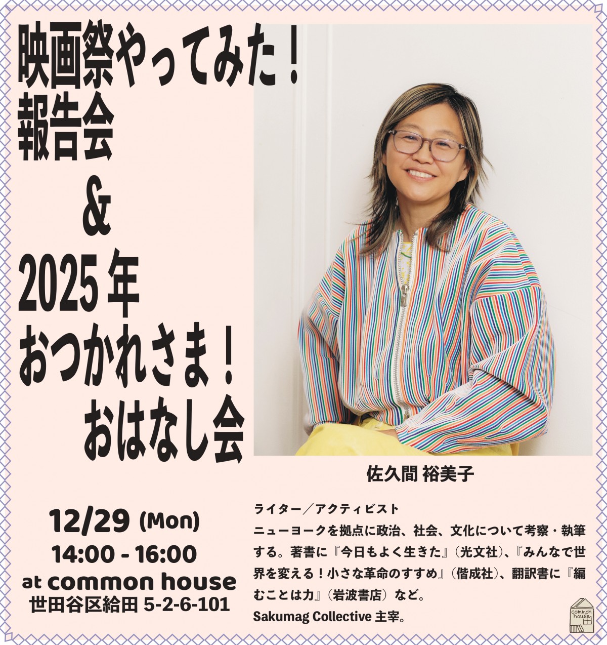12/29(月)14:00〜、NYから一時帰国中の文筆家・アクティビストの佐久間裕美子さんが来てくれます!11月20日〜30日に東京・横浜・大阪・尾道で開催されたNY発の自転車にまつわる映画祭「Bicycle Film Festival Japan Tour」(BFF)のプロデューサーとして各地を駆け回っていた佐久間さん。